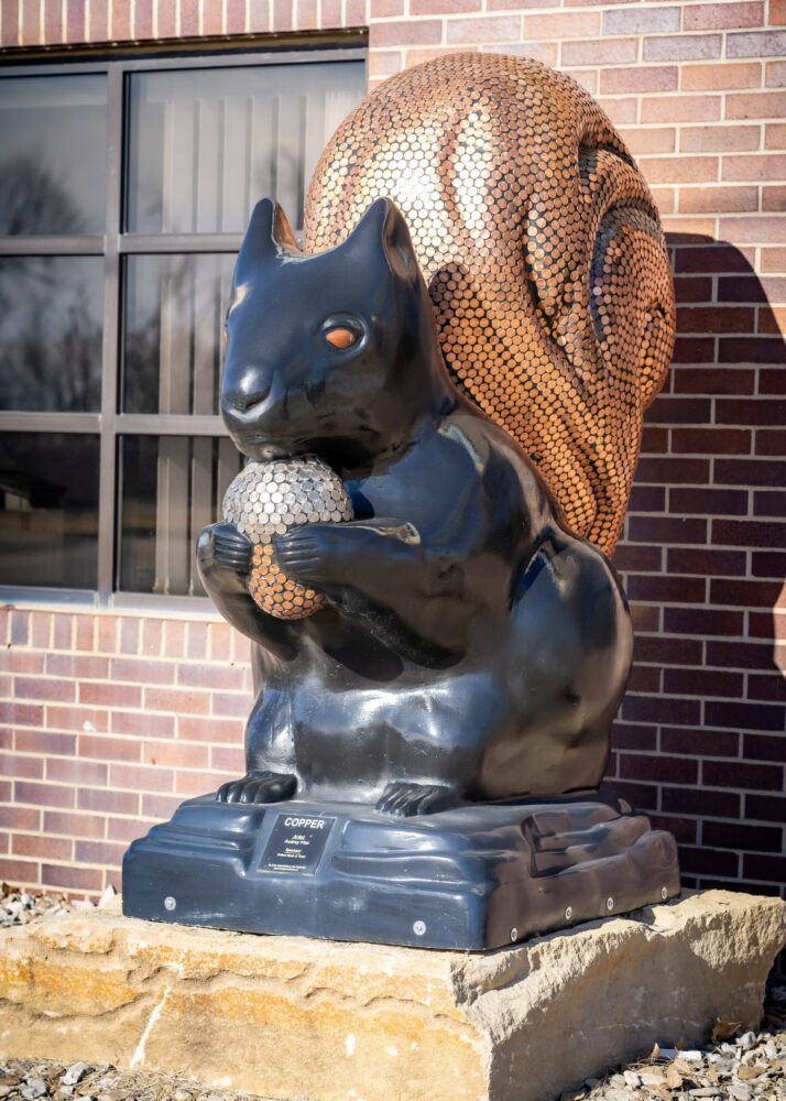 Copper, located at 18th & Center in front of United Bank & Trust. I love his tail covered in pennies (especially now that they are no longer in production)!