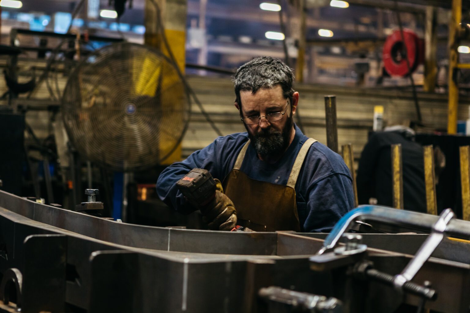 The exhibition brings together Boston-based photographer Brad Romano and Blue Rapids’ Tom Parker, who turned their lenses on Landoll Company employees at work—measuring, welding, shaping and assembling—alongside selections from the Marshall County Historical Society that trace the industries that helped build our community. Together, the images reveal the rhythm and ingenuity at the heart of manufacturing.